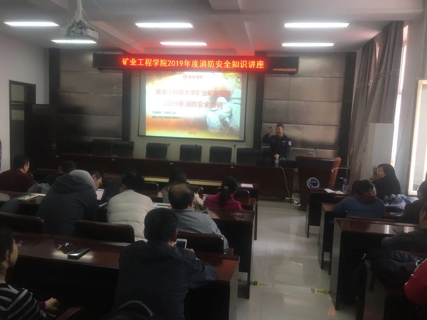 10月27日下午,金年会jinnianhuicom组织全体教职工在二楼会议室举办了消防安全知识专题讲座,哈尔滨松北区政安消防大队教官关洪亮应邀作了专题讲座。