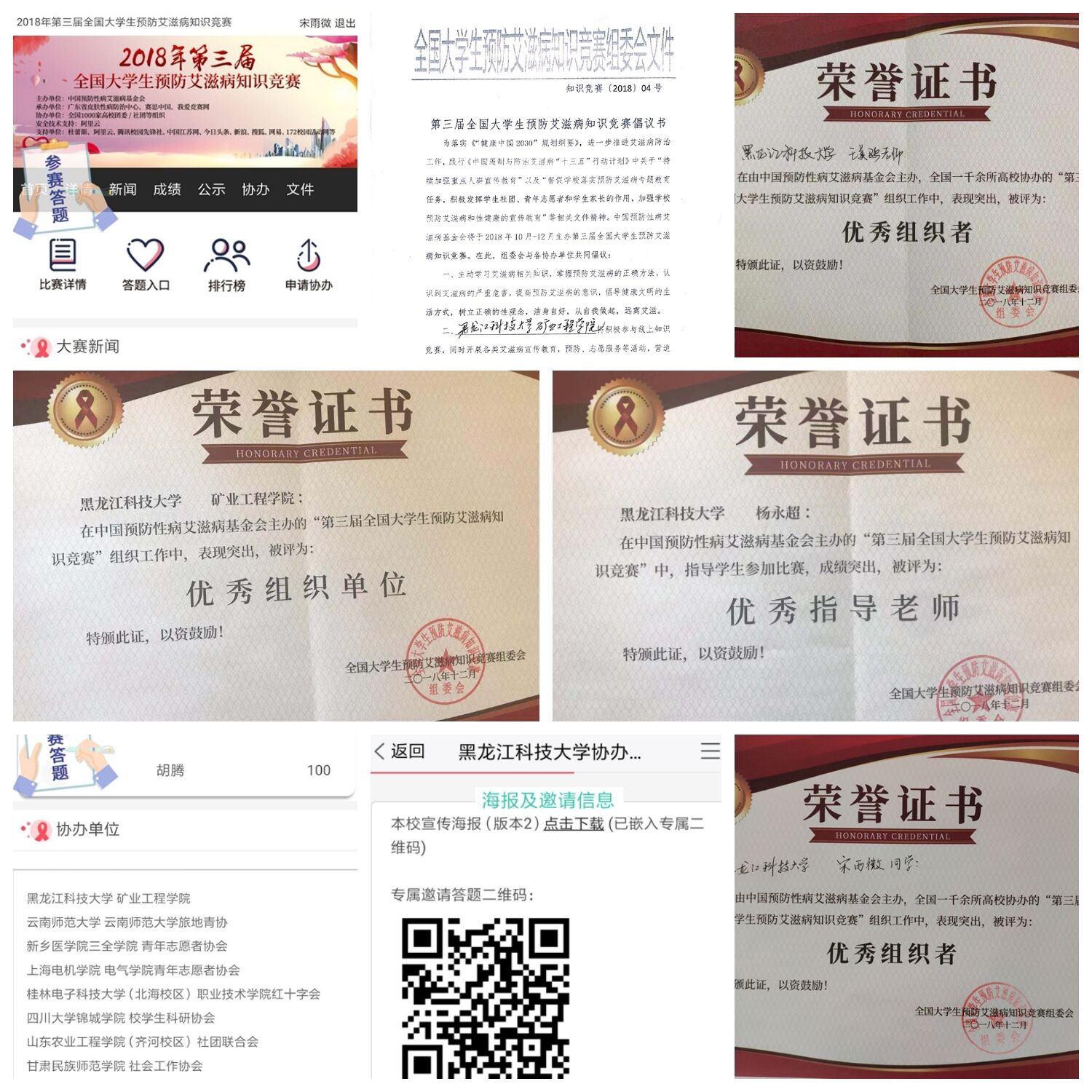 12月30日,由中国预防性病艾滋病基金会主办、多家单位承办的“2018年第三届全国大学生预防艾滋病知识竞赛”落下帷幕。金年会官网金年会jinnianhuicom作为全国1000家高校团委/社团等组织其中之一积极承办了本次活动。参赛期间,金年会jinnianhuicom积极筹备、扎实推进,共组织796人参赛,由于表现突出,学院荣获“优秀组织单位”荣誉称号,辅导员杨永超荣获“优秀指导教师奖”,王美鸥老师、宋雨微同学荣获“优秀组织者”荣誉称号。