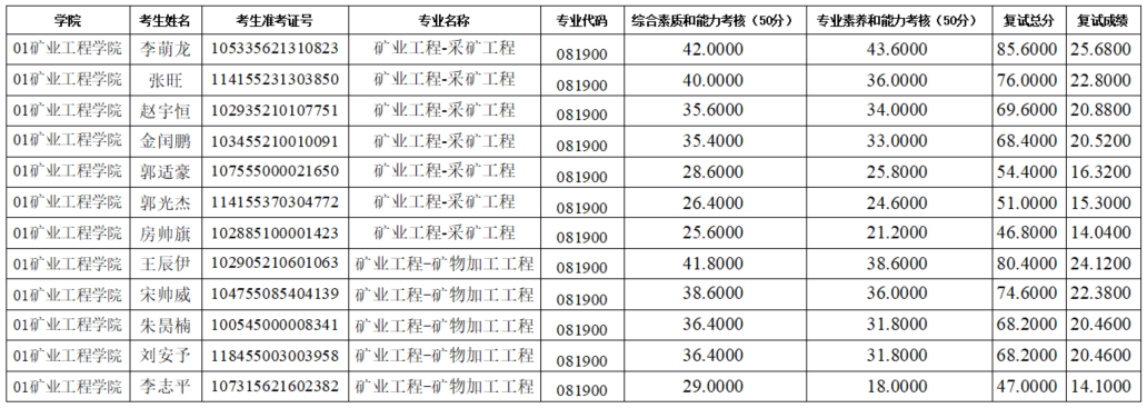 金年会jinnianhuicom2025年硕士研究生招生考试(矿业工程)第二次调剂复试成绩