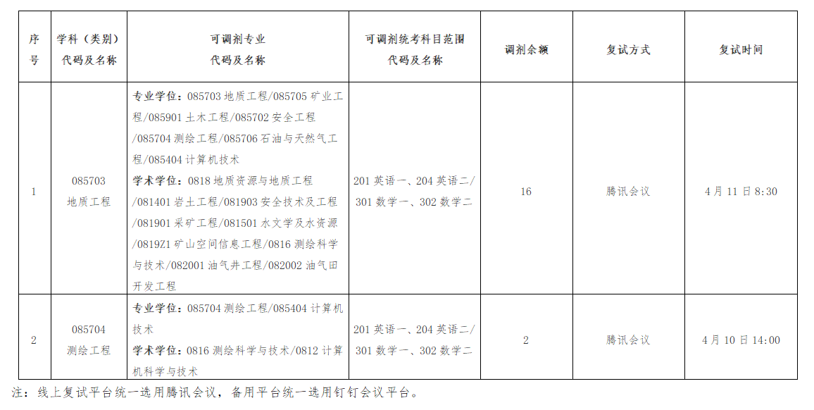 金年会jinnianhuicom2025硕士研究生考试(资源与环境-测绘工程、资源与环境-地质工程)第二次调剂公告