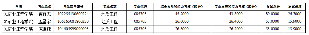 金年会jinnianhuicom2025年硕士研究生招生考试(资源与环境-地质工程)第一次调剂复试成绩