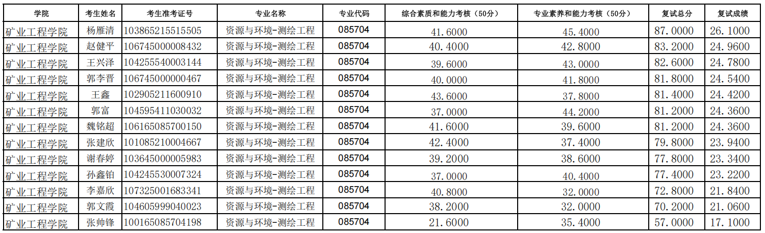 金年会jinnianhuicom2025年硕士研究生招生考试(资源与环境-测绘工程)第一次调剂待录取名单
