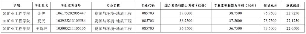 金年会jinnianhuicom2025年硕士研究生招生考试(资源与环境-地质工程)第五次调剂复试成绩