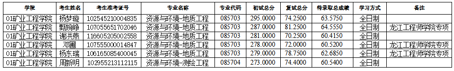 金年会jinnianhuicom2025年硕士研究生招生考试(资源与环境-地质工程)第三次调剂及(资源与环境-测绘工程)第四次调剂待录取名单