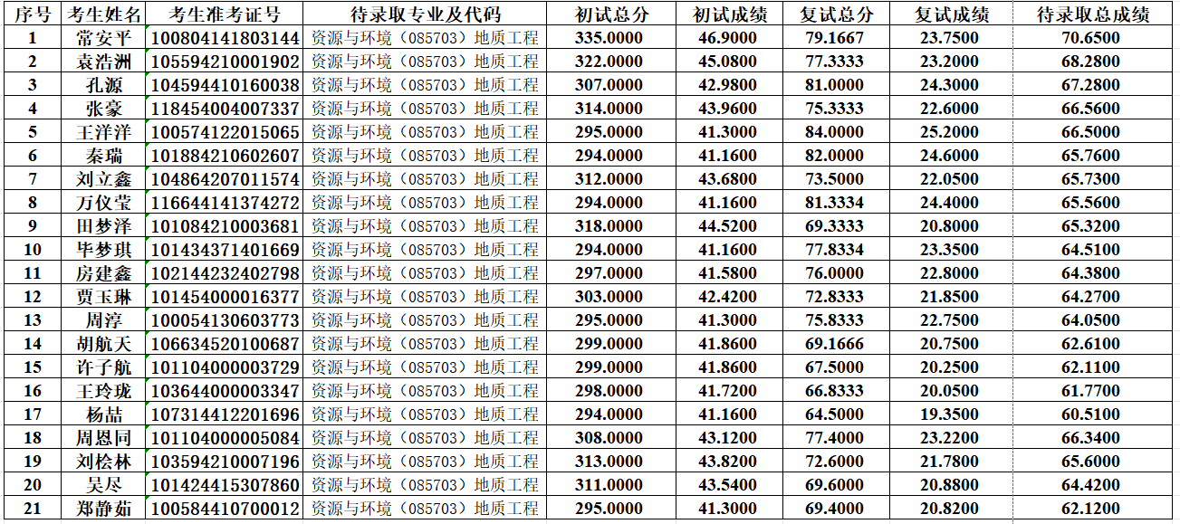 金年会jinnianhuicom2024年硕士研究生招生考试(地质工程专业)第二批及第三批调剂复试待录取考生名单