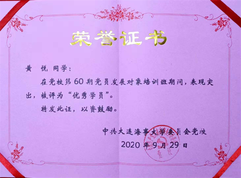14.党校第60期党员发展对象培训班期间被评为“优秀学员”