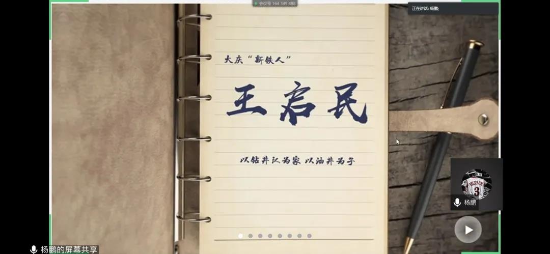 3月12日,第9期活动通过线上方式开展,主讲人为杨鹏同学,讲授人物是被授予“人民楷模”国家荣誉称号的大庆新铁人王启民。杨鹏同学首先讲述王启民敢闯敢拼的精神,阐述他在各个时代做出的贡献,着重强调了他始终将国家和人民的利益高于一切的精神,以及他敢为人先,敬业职守的操守。杨鹏同学呼吁大家以后无论从事什么工作,都应该敢为人先、恪尽职守,牢记党员身份,谨记党员职责,为建设社会主义现代化强国贡献自己的力量。