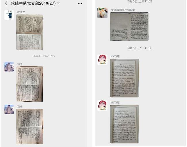 支部全体党员就新学期如何丰富组织生活形式,创新党员教育方法以充分发挥党支部的战斗堡垒作用等方面开展讨论。研究确定下一阶段支部各项工作安排,拟定疫情期间,理论学习以个人自学为主,支部拟定学习内容和学习计划,支部党员定期将学习比较拍照上传支部微信群。同时继续在线上开展“感悟榜样精神,凝聚奋进力量”主题党日活动。实践活动方面,现阶段,坚持“立足专业,服务同学”的原则,要求支部每名党员至少担任一门课程课代表,协助老师开展线上教学工作,帮助同学解决线上学习困难。