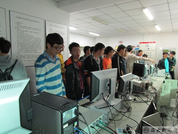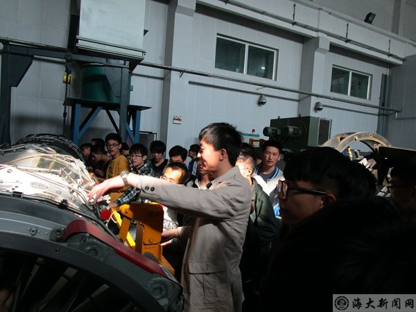 同学们首先来到实验室的一楼,这里放置着各种大型的内燃机,陈帝云耐心向大家介绍了各机器的名称以及用途。对于同学们提出的疑问,陈帝云也一一进行了解答。之后,大家来到了二楼操纵室,这里布置着各种仪器,通过陈帝云的介绍,同学们对实验室的操纵室也有了初步的了解。最后,大家还参观了用与模拟实验进程的模拟实验室。参观活动结束后,同学们纷纷表示收获良多。