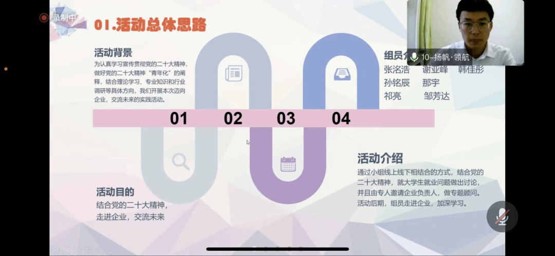 会议分为展示环节和交流环节。展示环节中,各队伍负责人通过3分钟计时答辩与PPT展示的方式阐述项目实践背景、成员分工、实践方案、预期效果、可行性分析等策划内容。交流环节中,评委老师针对各项目提出的活动计划等指出存在的问题并提出建设性意见。在深入了解各个团队的情况下从实效维度、教育维度、团队维度、创新维度、公益维度、可持续性、时代性七个方面进行综合打分。在大家的共同努力以及各个团队及评委老师的积极配合下,此次活动有序进行,各团队展示出了作为海大人的风采,线上答辩会取得圆满成功。