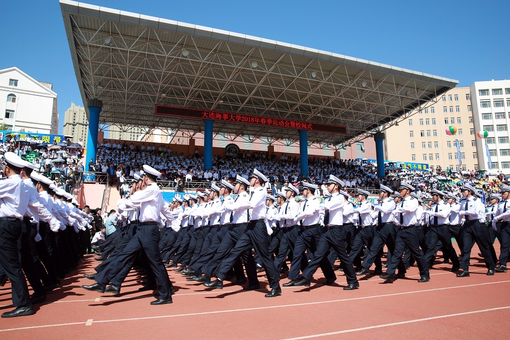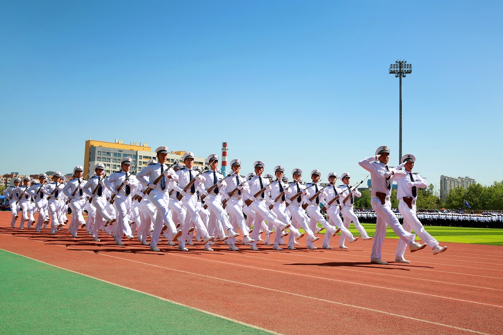 校党委副书记许民强检阅了各学院的学生方队,方队队员们热情洋溢、慷慨激昂的口号响彻西山体育场。随后,令人瞩目的校阅式正式开始,来自各学院的数十支学生方队,在校旗的引导下,意气风发、英姿飒爽。整齐的步伐、矫健的身姿、嘹亮的口号、坚定的眼神,充分体现出海事大学别具一格的半军管制度,同时也展现了我校“坚定、严谨、勤奋、开拓”的海大精神。